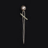 ein silberner zweizackiger Stift mit Kugelkopf, mit Bronzeplattenbefestigung.