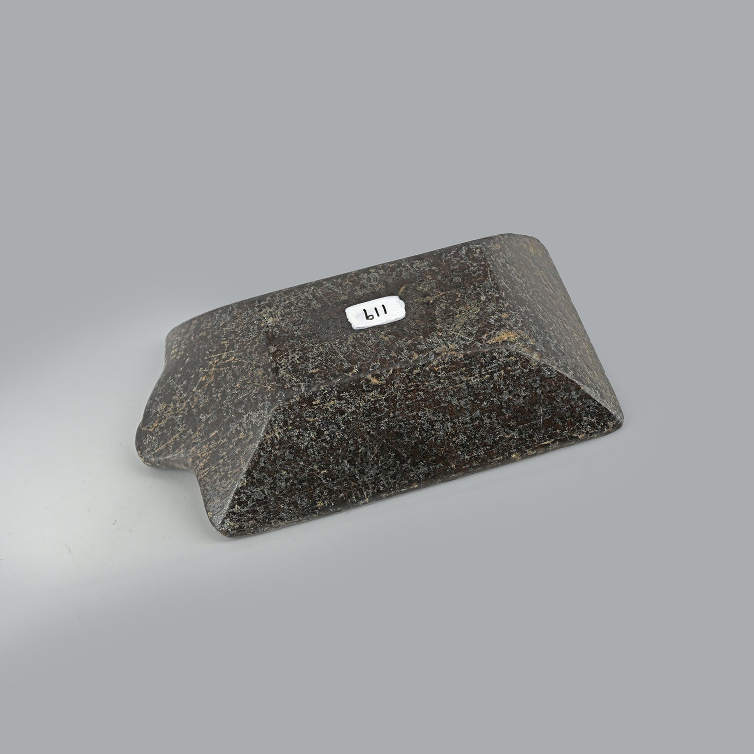 Background: Throughout the Old Kingdom, such palettes formed part of elite cosmetic and toiletry sets, used in the preparation of pigments for both ritual and adornment. Hematite, malachite, galena, and other minerals were ground together with oils or fats to create cosmetics for the eyes and lips, substances believed to have protective, therapeutic, and divine properties. Palettes of this type are well-attested in burial contexts and are thought to symbolize beauty, rebirth, and ritual purification.