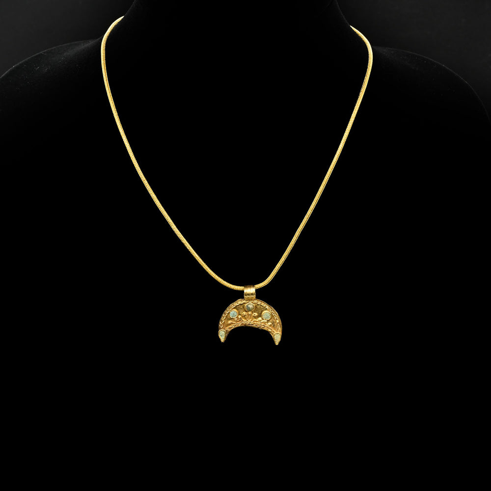 A superb Hellenistic Gold and Glass Crescent Pendant, ca. 2nd century BCE